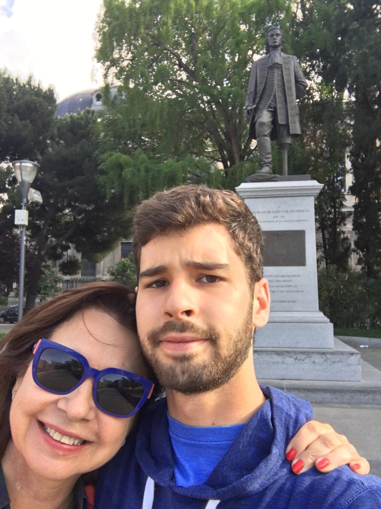 Irene y Alejandro con don Blas de Lezo en la Plaza Colón, Madrid.
